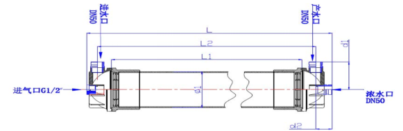 EM-UF-8060-PVDF,EM-UF-8080-PVDF,EM-UF-1060-PVDF膜組件結(jié)構(gòu)示意圖